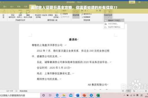 摘要:本文将为你提供美团收入证明的开具攻略。内容包括如何登录美团账户、进入个人中心、找到收入证明选项并申请开具收入证明等步骤。通过本文,你将了解如何顺利获取美团收入证明,以便在需要时提供有效的收入证明文件。