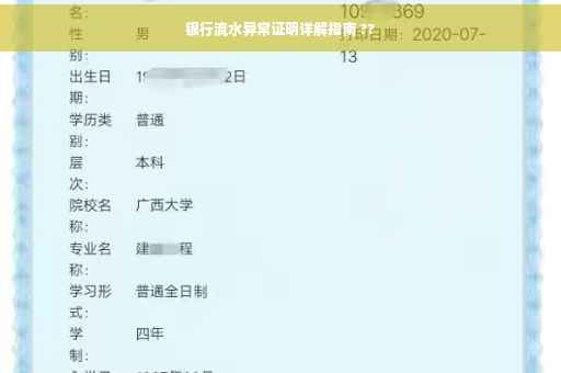 银行流水异常证明是银行出具的一种证明文件,用于证明个人或企业的银行流水记录出现异常,该文件通常包括以下内容: