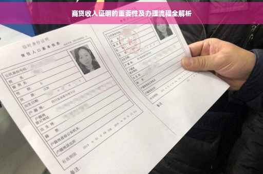 摘要:本文将详细介绍商贷收入证明的重要性以及办理流程。商贷收入证明是申请商业贷款时的重要材料,能够证明申请人的还款能力和信用状况。办理商贷收入证明需要遵循一定的流程,包括准备相关材料、填写申请表格、提交审核等步骤。本文旨在帮助读者了解商贷收入证明的相关知识,以便更好地完成商业贷款申请。