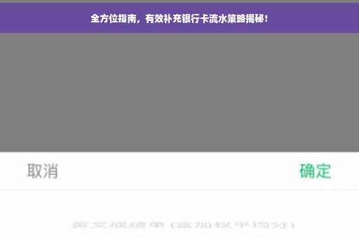 是本文关于如何有效补充银行卡流水的全方位解析,希望本文能为您带来实用的帮助,让您更好地管理个人财务,实现财富增值。