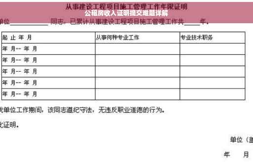 摘要:本文将解析公租房收入证明提交过程中遇到的难题,包括常见问题及解决方案。针对申请人因收入证明不足或缺失而面临的困扰,本文将提供实用建议,帮助解决公租房申请过程中的收入证明难题,确保顺利申请公租房。