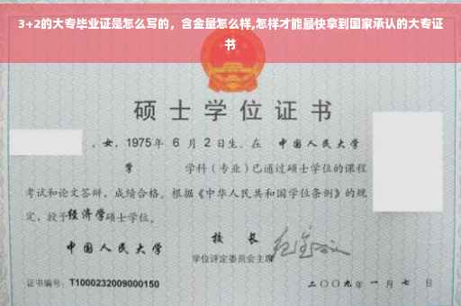 3+2大专是中专学校开设的一种班,就是初中毕业生在中专报名读五年书就可以直接拿大专毕业证了,其实是成人高考大专毕业证,只有通过对口高职进入的大专才是全日制,所以3+2的大专毕业证是成人高考大专毕业证,含金量不如全日制。