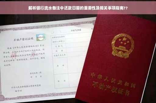 摘要:银行流水备注中注明还款日期至关重要,因为它能清晰展现个人或企业的资金流动情况,确保借贷双方权益。标注还款日期有助于避免逾期,维护个人信用记录。这也涉及相关事项解析,如流水账单的完整性、准确性及法律效力等。重视并正确标注还款日期,有助于个人和企业财务管理规范化。