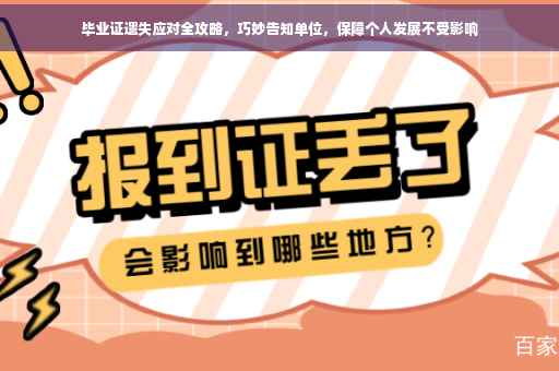 摘要:,,面对毕业证遗失问题,个人应妥善应对并尽早告知所在单位。为避免影响个人发展,需采取一系列措施,如及时在官方媒体发布遗失声明,联系学校开具证明文件,确保个人档案中有所记录。积极向单位人事部门沟通解释情况,提供必要证明材料,确保个人信息与单位记录相符。毕业证遗失虽会带来不便,但通过妥善处理和积极沟通,可避免对个人发展造成长期影响。