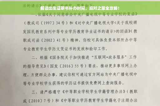 了解补办出生证明书的时间限制及相关细节对我们每个人都至关重要,本文详细解读了出生证明书补办的时间限制、影响因素、流程以及应对之策和注意事项,希望能为您提供帮助,如有更多疑问,建议向当地相关部门咨询,同时请注意,本文提供的法律依据及政策文件仅供参考,具体细节请参照当地相关法规和政策文件。