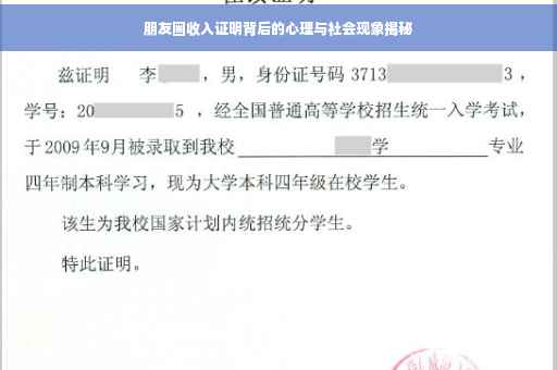 近年来,社交媒体成为展示个人生活的重要平台,在这个数字化的世界里,朋友圈已经成为一个展示个人成就的窗口,一些人喜欢在朋友圈晒自己的收入证明,以此展示自己的经济实力和生活品质,这种现象背后隐藏着复杂的心理和社会因素,本文将探讨这一现象背后的原因,分析晒收入证明的心理需求和社会影响,并探讨背后的文化价值观。