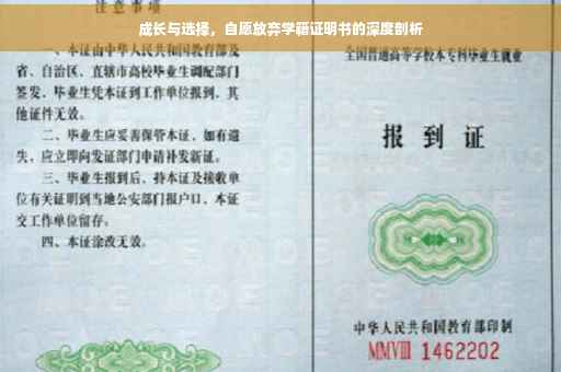 摘要:本篇文章深度剖析了成长与选择的重要性,以“我自愿放弃学籍证明书”为主题,探讨了个人在成长过程中所面临的选择与挑战。文章指出,放弃学籍并非简单的决策,而是关乎个人成长、价值观、人生规划等多方面的考量。通过对这一选择的反思,文章呼吁人们在成长过程中要勇敢面对选择,理性权衡利弊,坚定信念,追求内心的真实愿望。