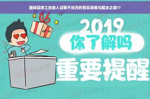 摘要:,,本文揭示了买房时工资收入证明不给开的背后真相。原来,这可能是由多种因素导致的,如雇主对开具证明的严格规定、个人收入证明存在瑕疵等。面对这种情况,应采取应对策略,如核实收入证明的具体要求、与雇主沟通协商或寻求专业法律咨询等。本文旨在帮助购房者更好地应对这一难题,确保购房过程顺利进行。