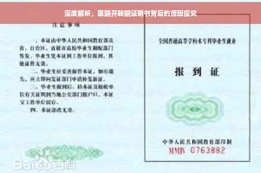 摘要:医院开具转院证明书的原因深度解析显示,这通常是因为患者病情复杂或需要更高级别的医疗服务,超出本院的治疗能力或专业范围,因此建议患者转至其他医疗机构接受进一步治疗。医疗资源分配不均和患者需求也是转院的原因之一。转院证明书的开具旨在确保患者得到更好的治疗效果和安全保障。