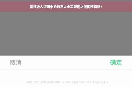 摘要:本文将揭示收入证明中的大写小写颠倒之谜。在财务证明文件中,数字的大小写颠倒现象引起了广泛关注。本文将探讨这一现象的背后原因,解析收入证明中的数字大小写转换规则,并介绍如何正确理解和使用这些证明文件。通过本文,读者将了解如何避免混淆和误解,确保个人财务信息的准确性和合法性。