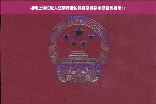 摘要:本文将揭示上海低收入证明背后的真相,探讨其中的问题和疑点。介绍如何查询存款余额,帮助读者了解自己的财务状况。通过本文,读者可以了解到如何保护自己的合法权益,避免陷入不必要的困境。