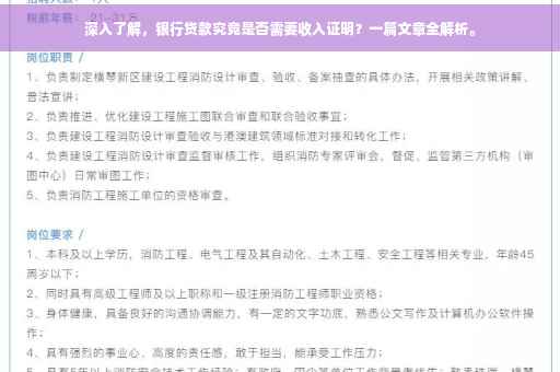 文章探讨银行贷款是否需要收入证明的问题,深入解析了银行贷款的审核标准和流程。文章指出,收入证明是银行评估借款人还款能力的重要依据,但并非所有贷款都必须提供收入证明,具体情况需根据贷款类型和银行政策而定。文章旨在帮助读者更全面地了解银行贷款的相关知识。