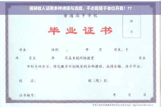 揭秘收入证明获取途径:不必局限于单位开具。收入证明有多种途径与选择,包括但不限于个人提供银行流水账单、税务证明、劳动合同等。这些方式都能有效证明个人收入状况,提供更多选择空间,满足各种情况下的需求。