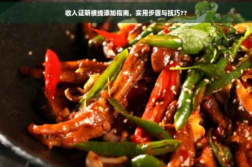 摘要:本实用指南将教你如何在收入证明中添加横线。操作简便易懂,首先了解收入证明的基本格式和内容,然后使用专业的编辑工具或软件,在需要添加横线的位置进行划线。确保横线的格式和内容符合证明文件的规范和要求,以提升文件的专业性和清晰度。遵循这些步骤,轻松为收入证明添加横线。