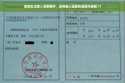 摘要:本文将深入探讨滴滴车主的收入证明问题,分析滴滴车主如何获得收入证明,包括从哪些渠道获取以及证明的具体内容。文章将帮助读者了解滴滴车主收入的真实情况,解决关于收入证明的疑惑。