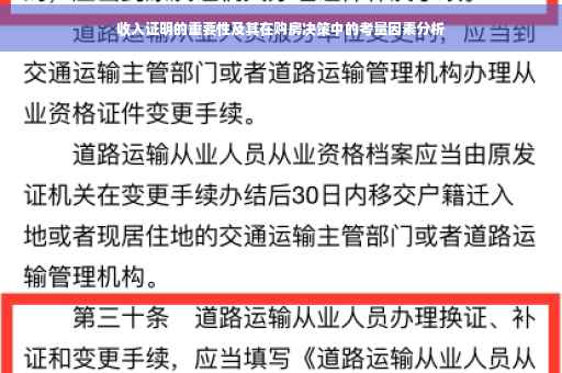 随着房价不断攀升,购房成为众多人心中的重中之重,在购房过程中,收入证明作为评估购房者经济实力和还款能力的重要依据,其重要性日益凸显,本文将详细探讨收入证明在购房过程中的作用及考量因素。