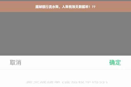 在日常生活中,我们经常会听到“银行流水”这个词,特别是在办理贷款、信用卡或一些金融业务时,银行流水作为证明个人经济能力的重要依据,往往起到关键作用,银行入账多少天才算流水呢?本文将从多个角度为您解析银行流水的奥秘,带您了解什么样的入账才算有效流水,以及在日常使用中如何正确维护银行流水。