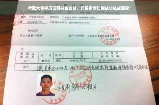 考取大专学历证明书是提升个人学历水平和职业竞争力的重要途径,本文提供了详细的攻略,希望能为广大读者提供帮助,在考取大专学历的过程中,遵守纪律、认真学习、积极参与实践,确保顺利完成学业,获取学历证明,为未来的职业发展打下坚实的基础。
