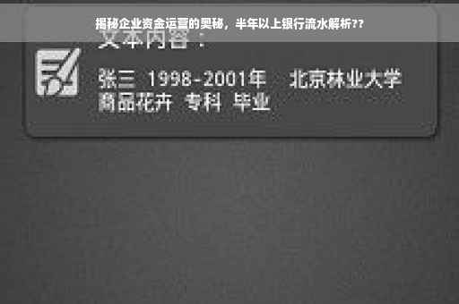 在当今经济高速发展的时代,企业资金运营的重要性日益凸显,银行流水账单作为反映企业资金运营状况的重要载体,其详细记录了企业在银行的各类资金交易记录,包括存款、取款、转账、贷款等业务的详细情况,本文将深入剖析企业银行半年以上的流水账单,探讨其背后反映的企业经营状况、资金流动情况以及风险控制等方面的问题。
