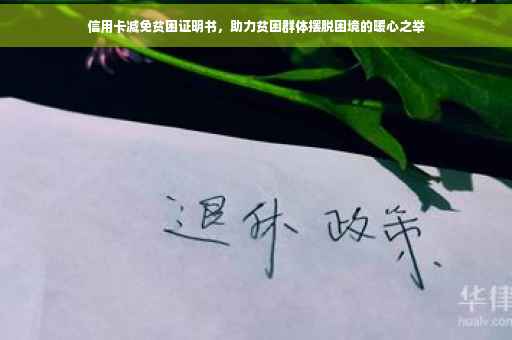摘要:,,信用卡减免贫困证明书是一项旨在帮助贫困群体摆脱困境的援助计划。通过提供信用支持,贫困人群得以获得更多经济机会和资源,进而改善他们的生活状况。这项计划不仅减轻了贫困群体的经济压力,也为他们提供了摆脱贫困的机会,助力他们实现自我发展和融入社会。