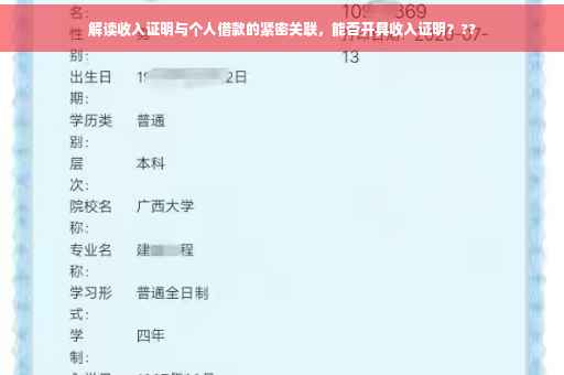 个人借款能否开具收入证明是很多人关注的问题。收入证明是证明个人经济能力的重要文件,对于申请贷款等金融操作至关重要。个人借款时,通常需要提供收入证明以证明还款能力。收入证明与个人借款紧密相关,借款人可以开具收入证明来支持借款申请。个人借款需收入证明证明经济能力,收入证明与个人借款紧密相关,借款人可开具收入证明支持借款申请。