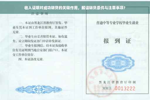 随着金融市场的持续繁荣与发展,贷款已成为越来越多人实现消费需求的途径,在贷款过程中,收入证明扮演着举足轻重的角色,它作为评估个人信用状况和还款能力的重要依据之一,拥有收入证明是否意味着可以顺利转贷呢?本文将为您全面解析转贷的条件及注意事项,助您更加明晰转贷流程。