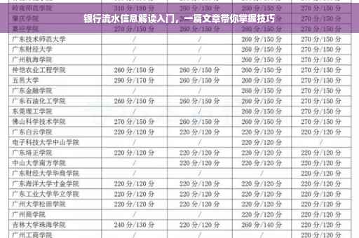 随着个人财务管理的重要性日益凸显,越来越多的人开始重视自己的银行流水信息,银行流水不仅是记录收支情况的简单清单,更是反映个人财务状况和理财习惯的镜子,学会解读银行流水信息对于个人财务管理至关重要,本文将为大家详细介绍如何读懂银行的流水账单,帮助大家更好地掌握个人财务状况。