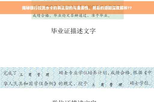 摘要:银行拉流水卡的目的是验证个人或企业的资金流动情况,以评估其信用状况和还款能力。背后原因包括确保贷款安全、降低风险以及提高信贷市场的透明度。流水卡的重要性在于它为银行提供了一个可靠的信用评估依据,有助于个人和企业获得贷款、信用卡等金融服务。了解银行拉流水卡的真正目的对于个人和企业来说至关重要。
