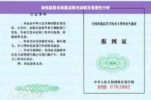 就医证明书在急性肠胃炎的情况下具有重要地位,它有助于证明患者的病情及就诊过程,为后续治疗或报销医疗费用提供依据;为患者提供法律保障,如因病请假或涉及相关法律责任时;协助医生了解患者的治疗过程及病情变化情况,为医生提供重要的治疗参考。