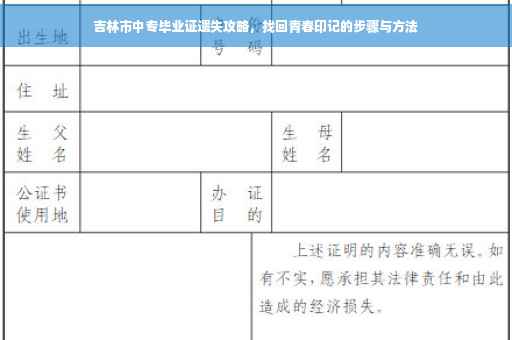 李明在吉林市某中专学校毕业后,因疏忽大意,他的中专毕业证遗失了,这张证书不仅代表他的学历,更承载着他青涩岁月的回忆,当意识到这个问题时,他已经无法找到那张珍贵的证书,面对求职、升学等关键时刻,没有这张证书让他倍感压力。