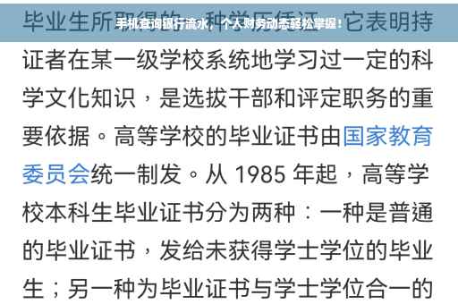 通过手机查询银行流水,我们可以轻松掌握个人财务动态,在享受便捷服务的同时,我们也要保证信息安全,注意保护个人隐私,希望本文能帮助您了解手机查询银行流水的相关知识,让您更好地管理个人财务。