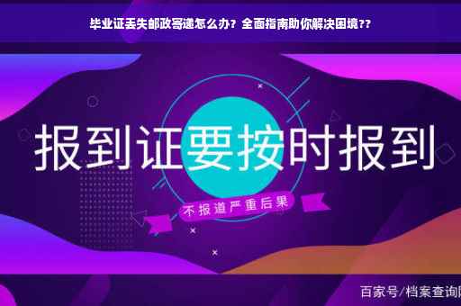 随着邮政快递服务的普及,越来越多的人选择通过邮政快递传递重要文件、物品给他人,有时候意外情况如毕业证等重要证件的丢失总会发生,这令很多人感到焦虑和无助,本文将为大家提供一份详尽的解决方案,帮助大家正确处理邮政寄丢毕业证的问题。