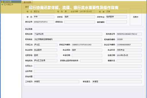 摘要:本文详细介绍了招商银行协商还款的流程,包括与银行沟通、提供相关证明文件等步骤。同时强调了银行流水在协商还款中的重要性,并提供了操作指南,帮助借款人更好地了解如何妥善管理自己的银行流水,以便在协商还款时更有说服力。