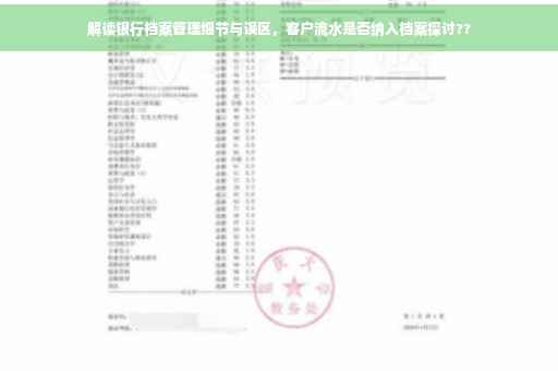 随着金融行业的快速发展,银行业务种类繁多,银行档案管理作为银行业务的重要组成部分,也变得越来越复杂和多样化,在这个过程中,客户流水作为银行与客户之间交易的重要记录,其是否算作银行档案一直是一个备受关注的问题,本文将围绕这一问题展开讨论,带领大家深入了解银行档案管理中的细节与误区。