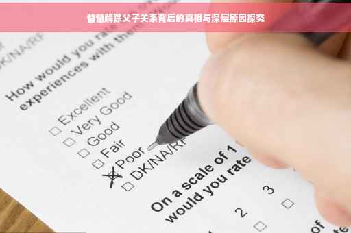 摘要:本文揭示了关于“爸爸解除父子关系证明书”背后的真相和深度解析。文章探讨了这一现象的背后原因,包括家庭矛盾、亲子关系恶化等可能因素。本文还将对这一现象进行深入解析,分析其对个人、家庭乃至社会的影响。通过本文,读者可以更加深入地了解这一问题的本质和内在含义。