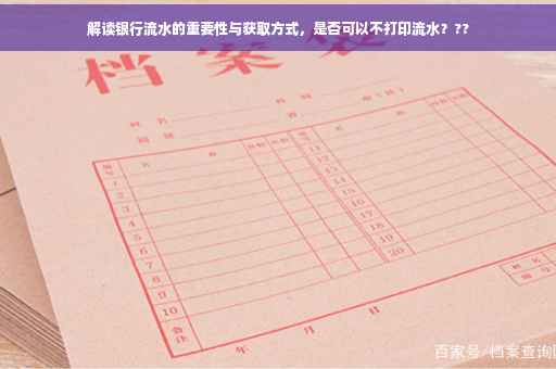 随着数字化时代的到来,我们的生活越来越离不开银行,在进行贷款申请、信用卡办理、业务合作等场合,银行流水作为重要的证明材料之一,往往被要求提供,随着科技的发展,很多人开始疑惑:银行流水是否可以不打印?本文将详细解读银行流水的重要性,并探讨其获取方式。