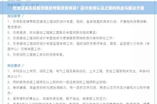 在人生的道路上,我们总会遇到各种意外和变故,一个小小的失误可能会给我们带来不小的困扰,当我们辛辛苦苦完成学业,却发现毕业证不慎丢失时,这无疑是一个巨大的打击,而对于那些志在成为医生的人来说,毕业证的重要性更是毋庸置疑,当面临毕业证丢失的困境时,我们是否还有资格继续考取医师资格证呢?本文将围绕这一问题展开讨论,并为您提供详尽的解答和建议。
