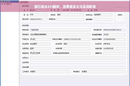 随着金融行业的快速发展,越来越多的人开始关注个人财务状况,在这个过程中,银行流水账单成为了评估个人经济实力的重要依据,不少人在讨论银行流水中的ZFI这一术语,很多人对其含义感到困惑,本文将详细介绍银行流水ZFI的含义、作用以及如何解读其信息。