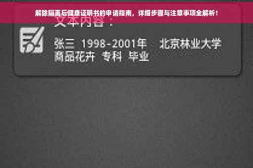 随着全球疫情的逐渐缓和,越来越多的人结束了隔离期,开始重返日常生活,在这个过程中,解除隔离后的健康证明书成为了重要的凭证,本文将为大家详细介绍解除隔离后如何顺利开具健康证明书,帮助大家顺利完成相关手续,顺利回归正常生活。
