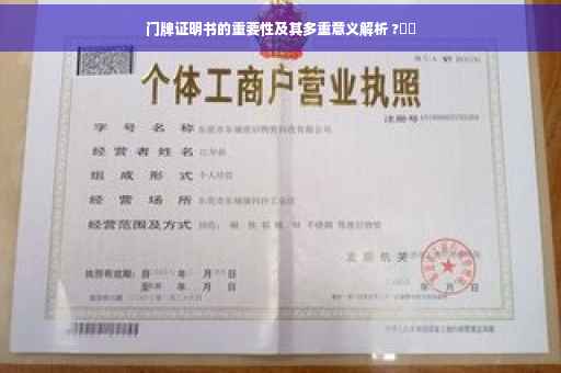 摘要:门牌证明书的重要性不容忽视,其多重意义体现在日常生活和工作中。门牌证明书不仅是房屋位置的标识,更是产权归属、居住权利、社区管理等方面的有力证明。它不仅有助于维护社会秩序,保障居民权益,还有助于政府管理和公共服务提供。重视并妥善保管门牌证明书对每个人来说都至关重要。