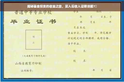 摘要:本文将为你揭示基金投资的收益之旅,探讨基金买入后何时能获取收入证明。从基金申购确认日到实际产生收益的时间节点,以及收益分配和证明方式等方面进行详细解读。投资基金并非一蹴而就,了解基金收益的产生过程,有助于投资者做出明智的决策。