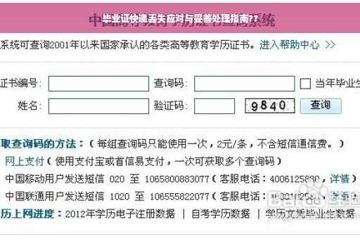 1、及时联系快递公司:请立即联系快递公司客服,详细说明情况,并提供相关证据(如快递单号、收件人信息等),要求快递公司查询物流记录,确认毕业证确实丢失,\n2. 报告学校:尽快向毕业学校报告毕业证丢失情况,不同学校对于毕业证丢失的处理方式可能有所不同,需提前了解学校的具体政策和流程。