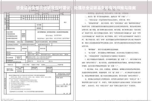 摘要:,,本文说明了毕业证丢失的情况及应对建议。面对毕业证丢失的问题,首先需明确丢失的具体情况,包括证件丢失的时间、地点等。针对此情况,建议采取以下措施:立即向学校相关部门报告,获取丢失证明;在媒体或网上发布证件丢失声明,避免被他人冒用;尽快补办新证件,确保个人权益不受影响。及时采取措施,减少毕业证丢失带来的不便和损失。