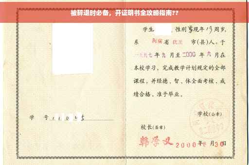 摘要:被辞退时,了解开证明书的重要性十分必要。这份全攻略将帮助你应对相关手续。你需要明确证明书的种类和内容,包括离职证明、工作表现证明等。了解获取证明书的流程,如向人力资源部门申请、填写相关表格等。注意证明书的法律效力及其作用,确保自己的权益不受损害。这份攻略将为你提供全面的指导,帮助你顺利度过这一过渡期。