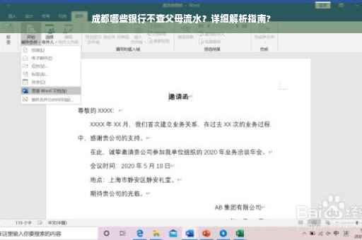 摘要:本文将介绍在成都哪些银行办理贷款或信用卡时,不需要提供父母的银行流水证明。文章详细列举了一些不查父母流水的银行,为需要办理业务的读者提供了便利。内容旨在帮助读者了解不同银行的政策差异,以便更好地选择适合自己的金融服务。