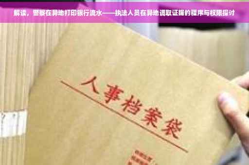 摘要:本文探讨了警察能否在异地打印银行流水的问题,解读了执法人员在异地调取证据的程序与权限。文章指出,警察在异地调取证据时需要遵守相关法律规定,包括银行流水等金融信息的获取也需要依法进行,并需遵循一定的程序和权限。具体情况需根据当地法律法规和程序而定。