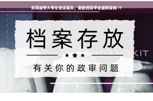 摘要:东莞成考大专毕业证丢失后,想要重新找回学业成就,可以通过联系毕业学校或当地教育部门,查询档案记录,获取相关证明。保存好个人身份证明和学历证书等相关证明材料,以便顺利办理相关手续。还可以考虑通过其他途径证明自身学业成就,如提供成绩单、学历认证报告等。