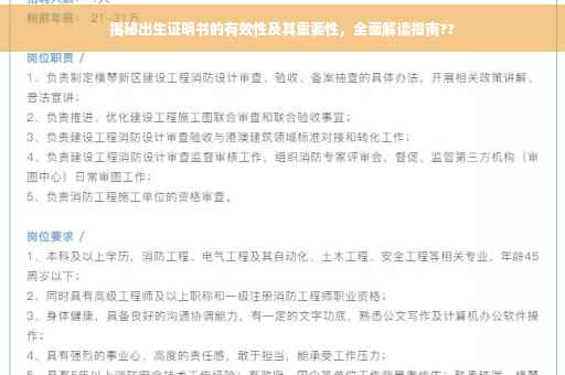 出生证明书作为个人身份的关键法定证件,其有效性及重要性不容忽视,政府、相关机构和公众应共同努力,确保出生证明书的真实性和完整性,加强管理和使用,以维护社会秩序和法治建设。