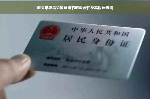 随着养殖业的快速发展,动物疫病的防控工作日益受到重视,鸵鸟作为一种新兴的养殖动物,其健康问题同样关系到养殖户的切身利益,在汕头市,鸵鸟养殖产业逐渐兴起,而鸵鸟免疫证明书的重要性也日益凸显,本文将详细介绍汕头市鸵鸟免疫证明书的作用、办理流程及其影响,以加强人们对这一证明书的认识。