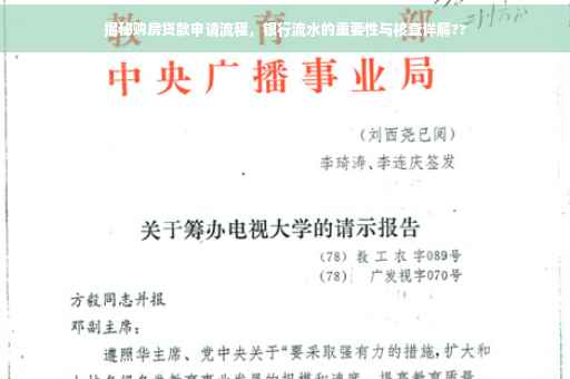 摘要:本文将为您揭秘购房贷款申请流程,重点介绍银行流水的重要性以及核查方式。了解银行流水在贷款申请中的关键作用,包括其如何影响贷款审批和额度。本文还将指导您如何准备和提供有效的银行流水证明,以便顺利获得购房贷款。
